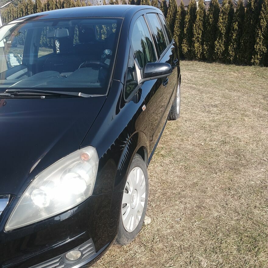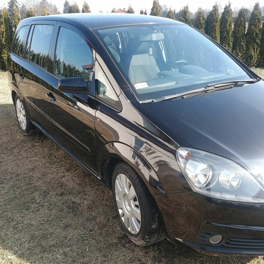 Opel Zafira b,1,6 benzyna. Jestem właścicielem od 9 lat. Serwisowane, książka serwisowa prowadzona w kraju,wszystko udokumentowane.Wyposażenie: klima,kierownica wielofunkcyjna,dvd,eel.szyby przód, komputer pokładowy,jak, halogeny, opony na felgach lato i zimą. Dwa kluczyki.Cena do negocjacji.